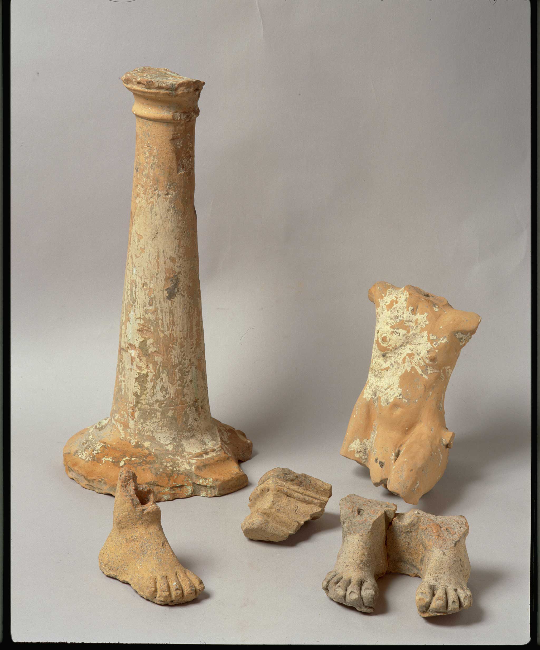 Frammento di arula fittile, di thymiaterion, di figura itifallica e altri frammenti di coroplastica. Modena, Magreta, dall’area dei Campi Macri