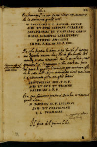 Et ultimamente in un marmo ritrovato gli anni andati nelli fundamenti della Cittadella anticha si legano le seguente parole